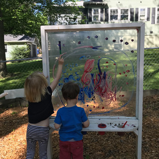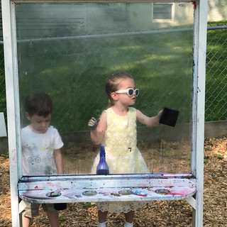 Emily and I tried to make outdoor classroom include the same type of activities and experiences that we have inside our Bowen classroom. We set up rock painting at the activity table. The rocks took some time to dry so we left them up on the playground. We apologize for using permanent acrylic paint!