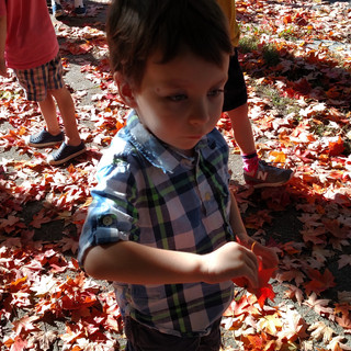 Our nature walk was very successful. The weather was still like summer, even though we saw signs of Fall. Along the way, we saw a butterfly/moth, pumpkins, colored leaves, Halloween decorations, flowers, bugs, and even a pumpkin growing on a vine! These finds are being incorporated into our curriculum to enrich each child's connections to nature and learning.