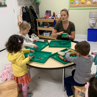 We continue to explore our favorite stories. This week we read Jax's, Pete The Cat and His Four Groovy Buttons and Natasha's, The Secret Birthday Message. We integrated green and pink into our table activities this week.